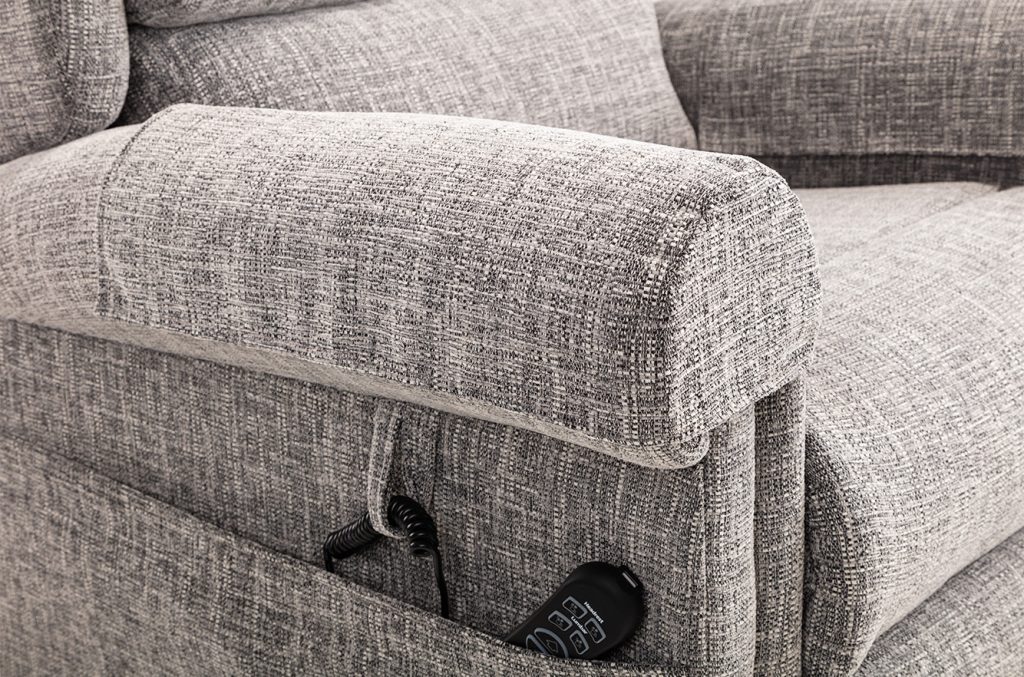 Arm covers can be positioned on the riser recliner armchair to offer extra protection for an area prone to fabric wear and tear. These covers not only safeguard the chair, ensuring the fabric remains in pristine condition for longer, but also provide an added layer of coziness.