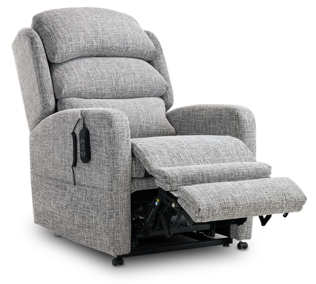 The Camberley, with its Waterfall back and retro-styled arms, is perfect if you need a compact riser recliner chair. Its simplicity makes this electric rise and recline chair popular, as you can place it alongside any furniture style. Ideal if you need a small recliner chair to belong in your home immediately.